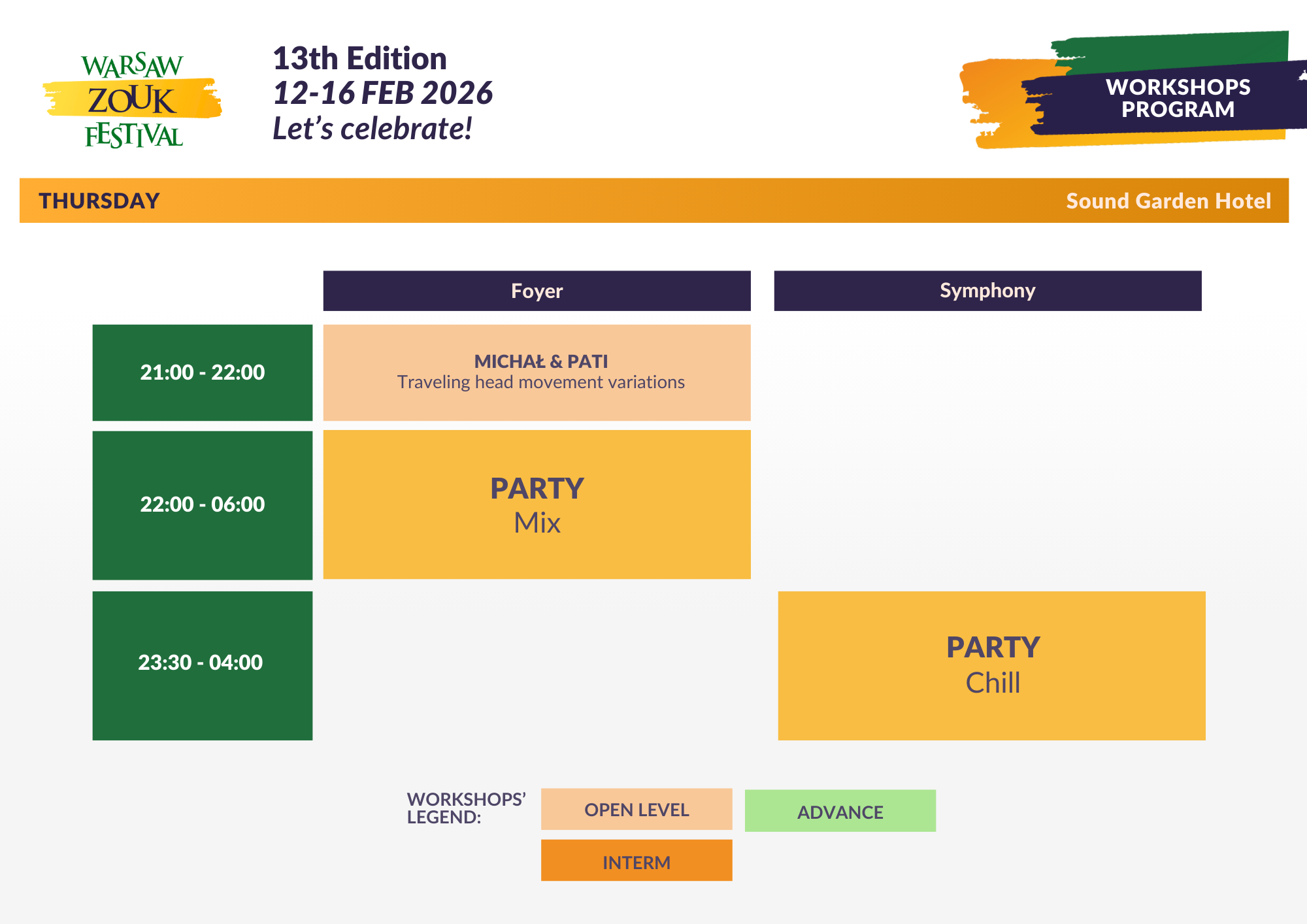 (warsztaty + dzienne socials, bez imprez nocnych)
