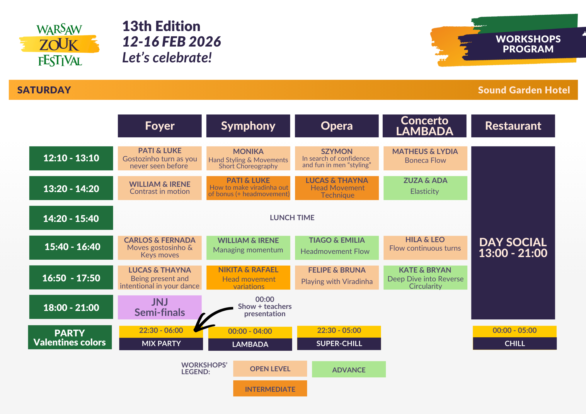 (warsztaty Lambady (Lambada Room) + wszystkie festiwalowe socials)