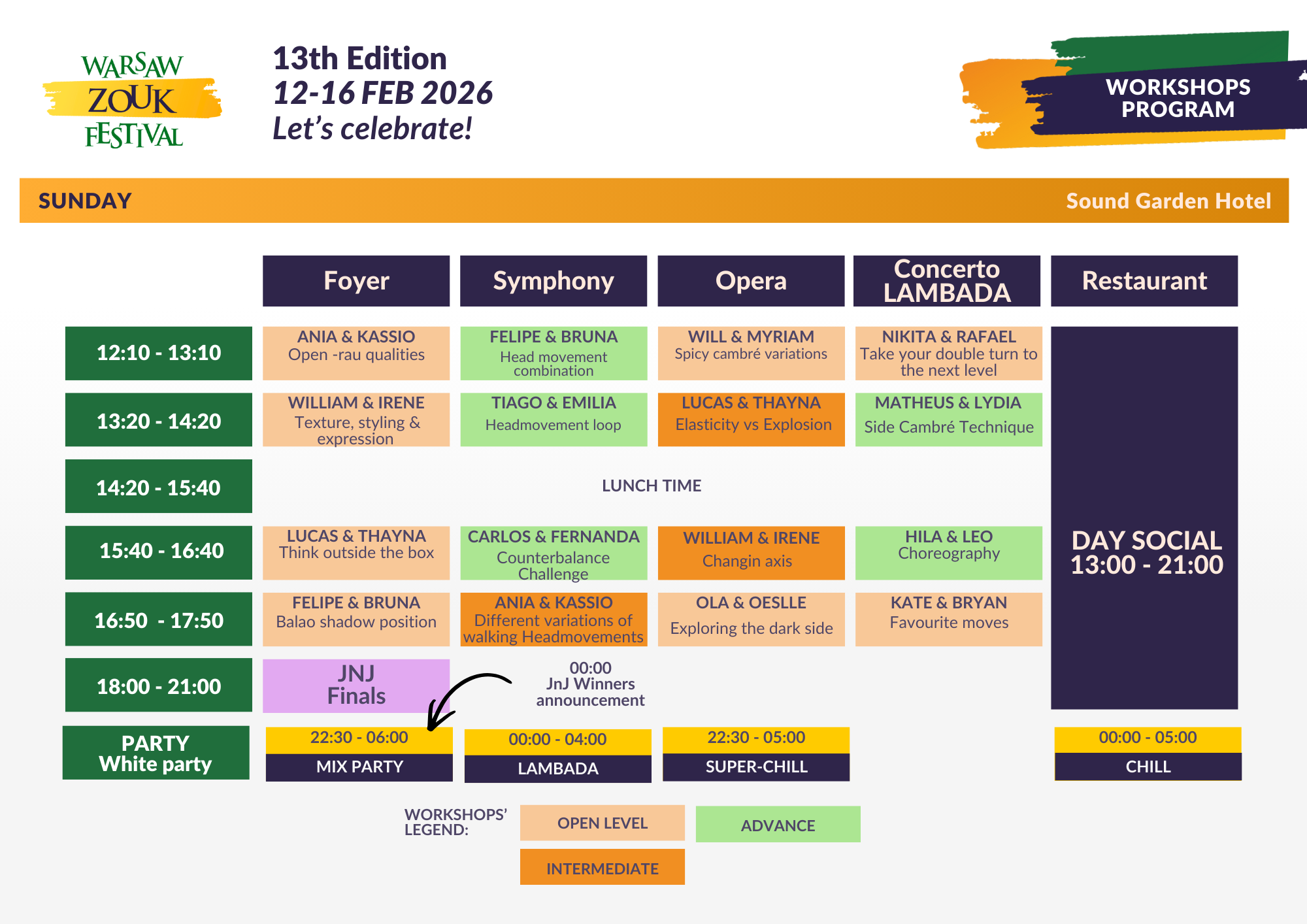 Bilety Workshops And Social Days nie uprawniają do udziału w Jack & Jill.